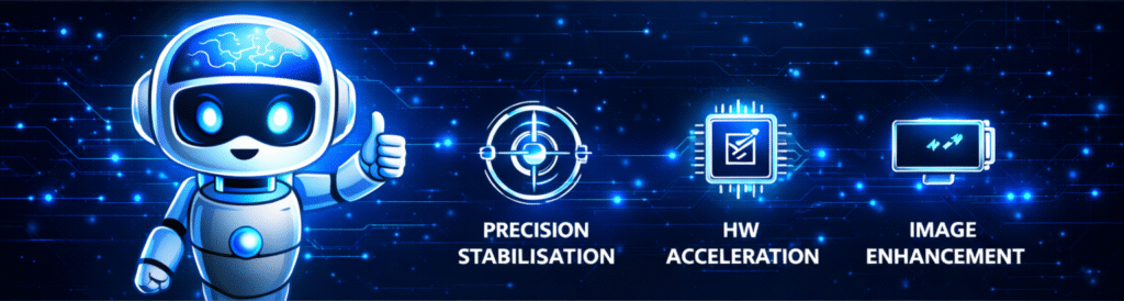 Precision Stabilisation, Advanced Hardware Accelerated ISP, Encoding and Image Enhancements.